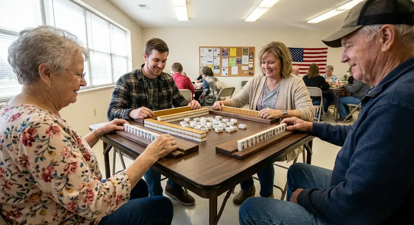 Newton County maintains tile gaming through Ozark Mountain communities, blending American social traditions with Chinese and Japanese variants.