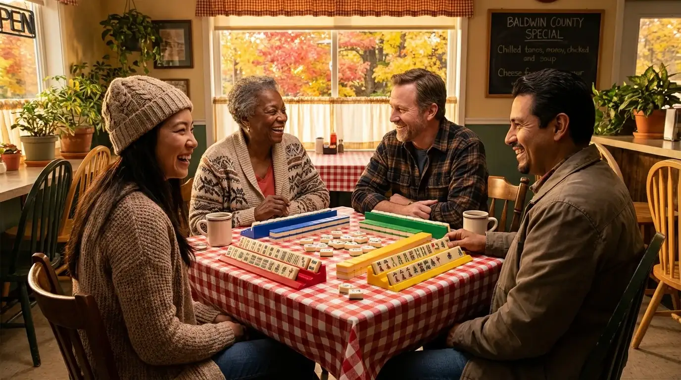 Baldwin County cultivates Georgia mahjong through community networks. American mahjong groups gather regularly. Chinese classical, Japanese riichi, and Hong Kong variants find followers among growing Asian communities. Cultural centers provide gathering spaces.