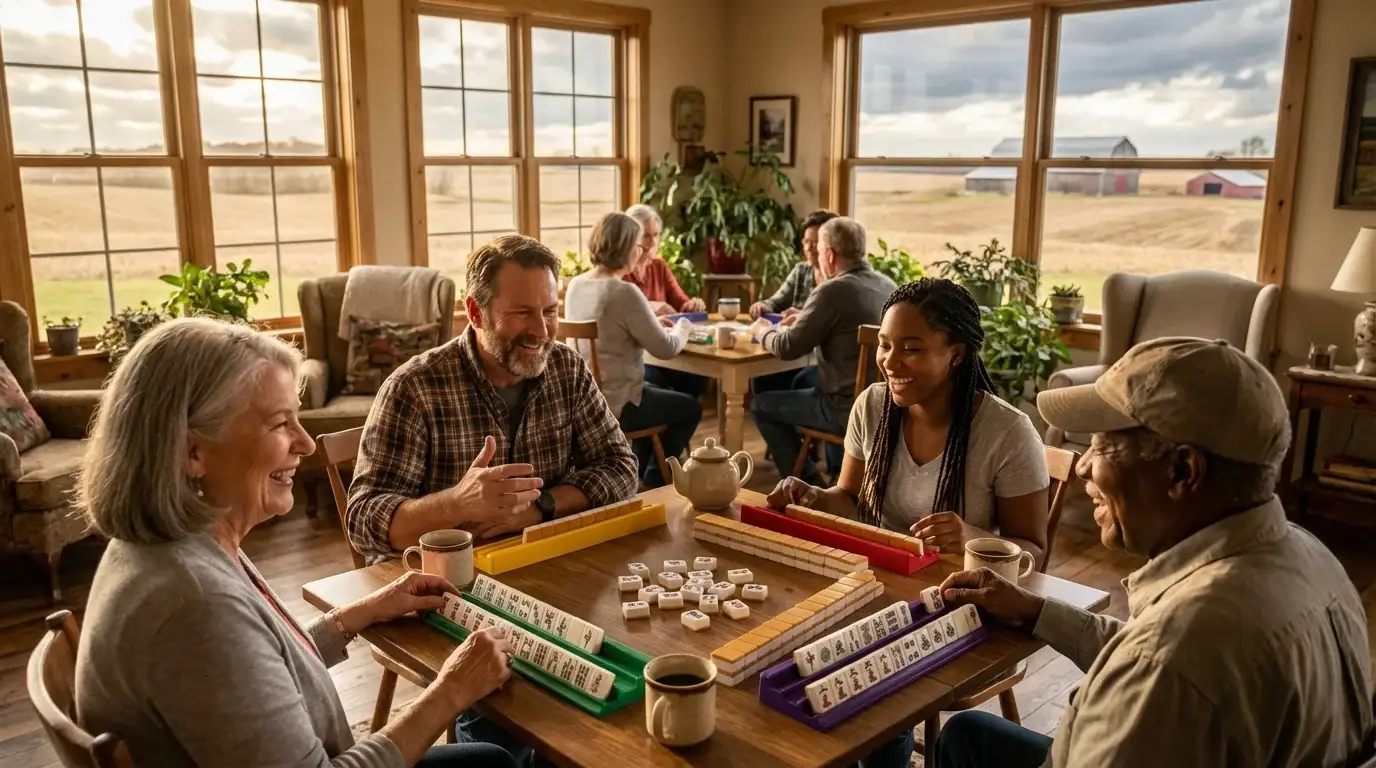 Given the low population density and expansive plains of our county, mahjong currently flourishes through small, private social circles rather than commercial clubs. This emerging nature means the scene is highly personal, focusing on building long-term friendships and teaching the game to new players in cozy, home-based environments.