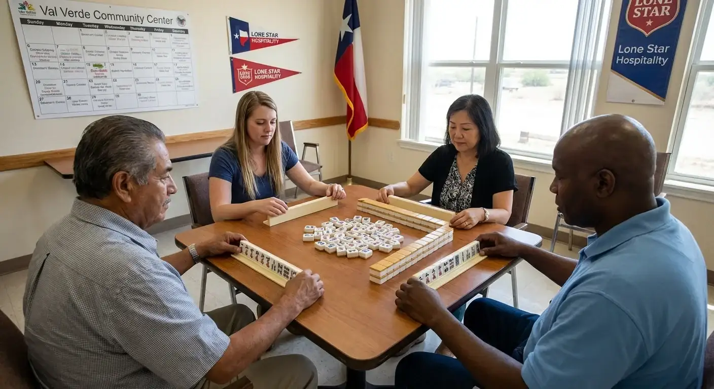 The presence of Laughlin Air Force Base and the county's position on the Mexican border create a unique international demographic. This influx of diverse residents means you will often find American National Mah Jongg League rules being played alongside international variants brought by transient military families and retirees settling near the Rio Grande. It fosters a multicultural gaming environment that is more varied than typical rural Texas regions.