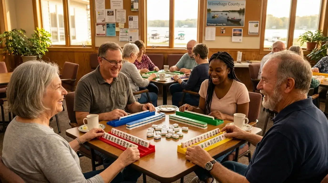 Winnebago County features an active mahjong community in the Fox Valley region of Eastern Wisconsin. Oshkosh, Neenah, and Menasha offer multiple venues for players to enjoy regular game sessions. Senior centers throughout the county host weekly games that attract players from across the region. The Oshkosh Public Library and Neenah Public Library sponsor game days that welcome players of all skill levels. The University of Wisconsin-Oshkosh adds a youthful element to local gaming culture. Community centers and church fellowship halls provide additional spaces for organized play. Lake Winnebago provides a scenic backdrop for this growing metro area. The Fox Valley manufacturing heritage and diverse population create a welcoming atmosphere for players of varied backgrounds. Home games complement public venues throughout the county. Whether you prefer competitive tournament play or casual social gaming, Winnebago County has welcoming groups.